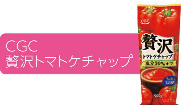原料に高リコピントマトを使用。「CGC トマトケチャップ」と比べてリコピン値は1.5倍、塩分は30%カットしました。